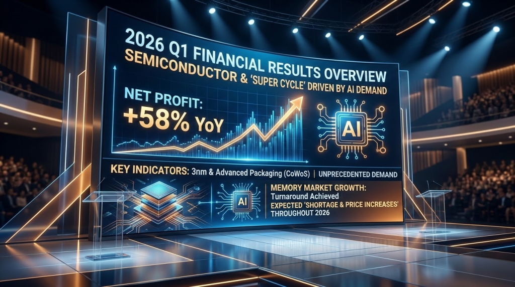 - 业绩爆发:台积电(TSMC)昨日发布的 2026 年第一季度财报显示,利润同比激增 58%,并将全年营收增长预期上调至 30% 以上。