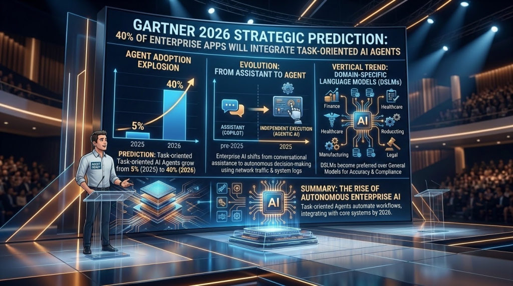 - 关键词: Gartner 2026 趋势、智能体 (Agentic AI)、领域模型 (DSLM)