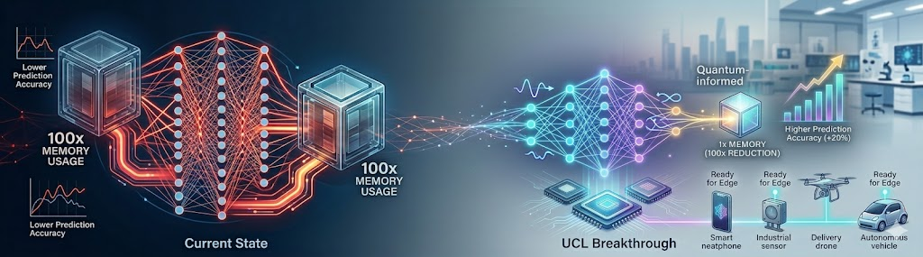 - 算法逻辑: UCL 研究团队在《Science Advances》发表成果,其开发的“量子启发式(Quantum-informed)”AI 模型借鉴了量子力学的叠加与纠缠逻辑,但无需量子硬件即可在传统芯片运行。