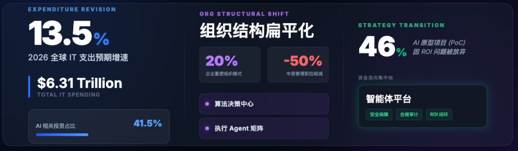 - 关键词: Gartner 2026、IT 支出、组织扁平化、Agentic AI 平台