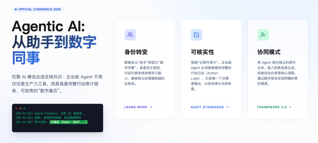 关键词: 伦敦 AI 峰会、Agentic AI、数字同事、可审计性