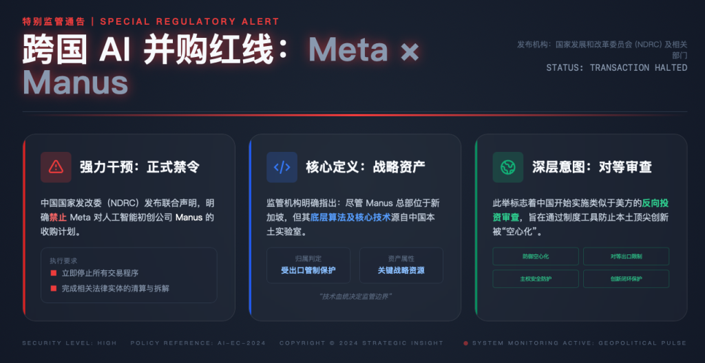 关键词: Meta 收购、Manus、AI 监管、技术出口管制
