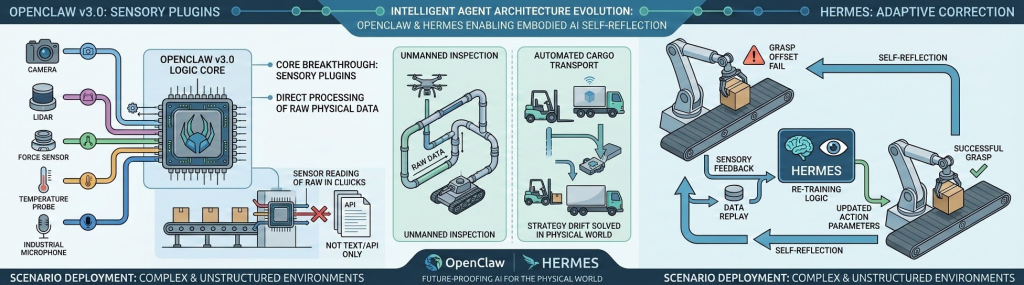 关键词: OpenClaw v3.0、Hermes、具身智能、物理自纠错、多模态智能体