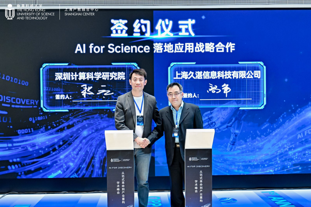 峰会上释放出重要信号:香港科技大学正在上海积极推进AI for Science应用落地,加快推动前沿科研成果向现实生产力转化。会议期间,深圳计算科学研究院与上海久湛信息科技有限公司正式签署战略合作协议。未来,双方将依托崖山大数据底座,联合推进人工智能与科学计算的融合创新,围绕科学研究、算力支撑、模型应用与场景落地等方向开展深入合作,为科技创新与产业转型提供更强支撑。
